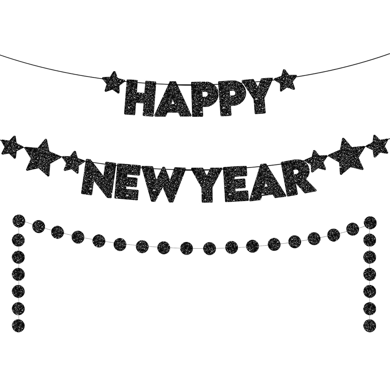 Black Glitter Happy New Year Banner with Circle Garland- 10 Feet