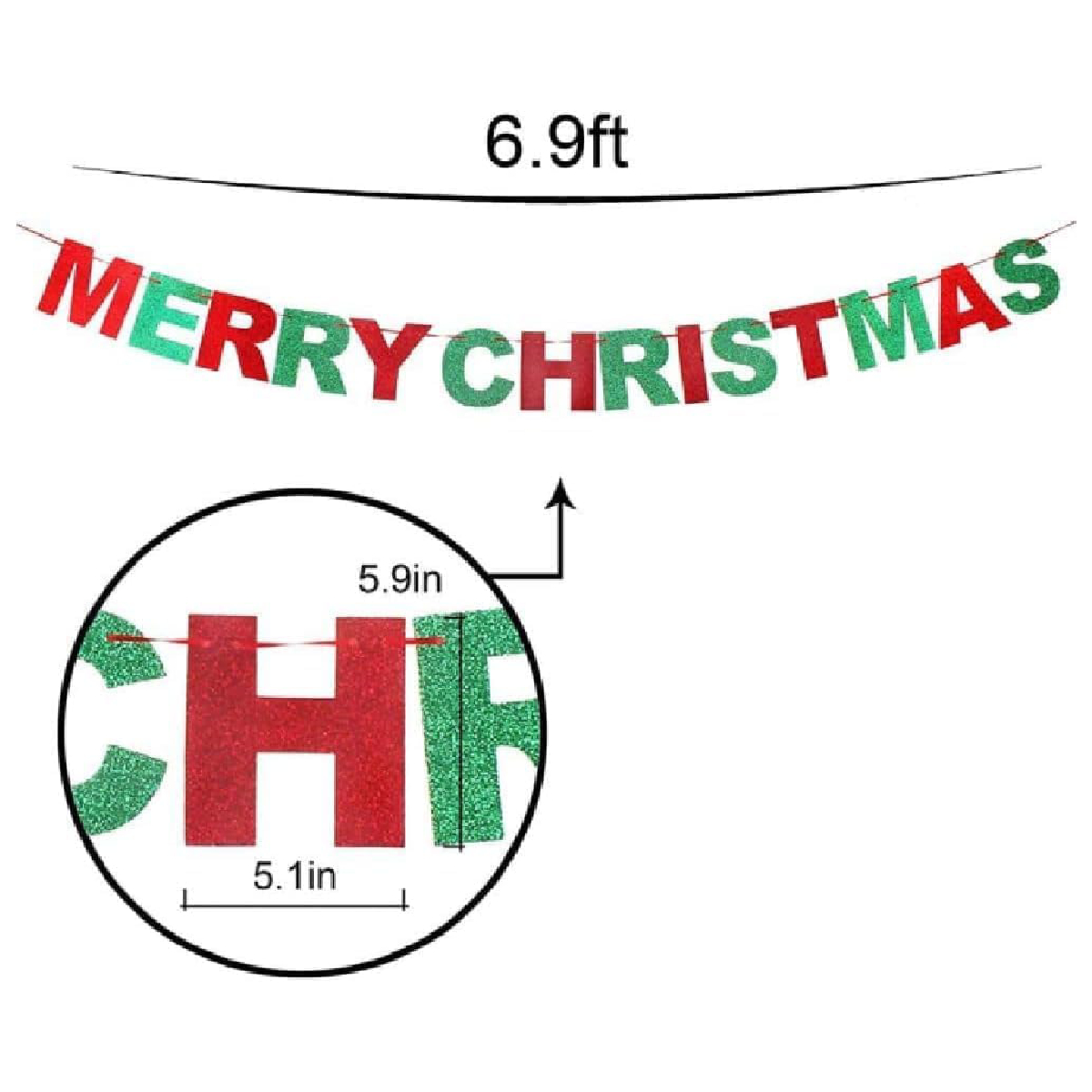 Bring festive charm to your home with this beautifully designed Merry Christmas Banner Garland Set, the perfect addition to your holiday décor. Featuring bold red and green glitter letters, this eye-catching banner stretches to a total length of 6.9 feet (approx. 2.1 meters), making it ideal for decorating walls, windows, balconies, fireplaces, party tables, or Christmas tree areas.