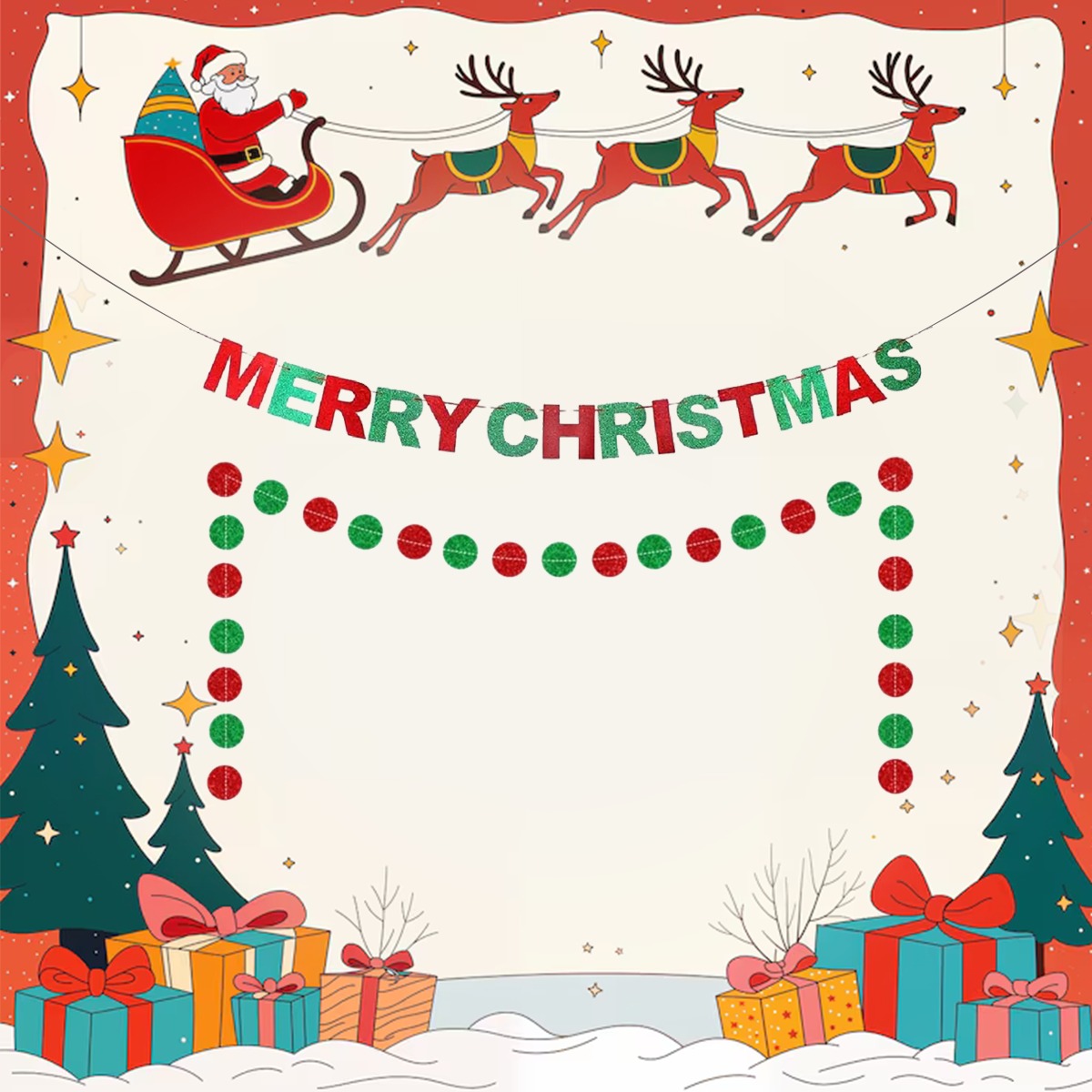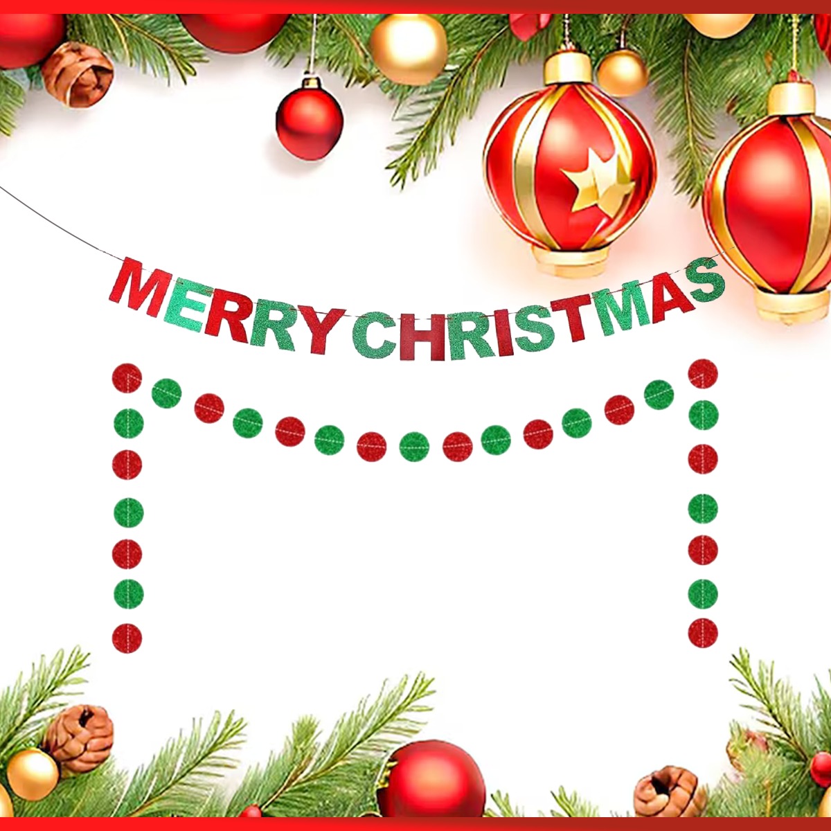 • Merry Christmas Banner Set: Add instant holiday charm to your home with this beautifully designed Merry Christmas banner, featuring red and green glitter letters and matching decorative dot garlands that create a warm, cheerful Christmas atmosphere.
