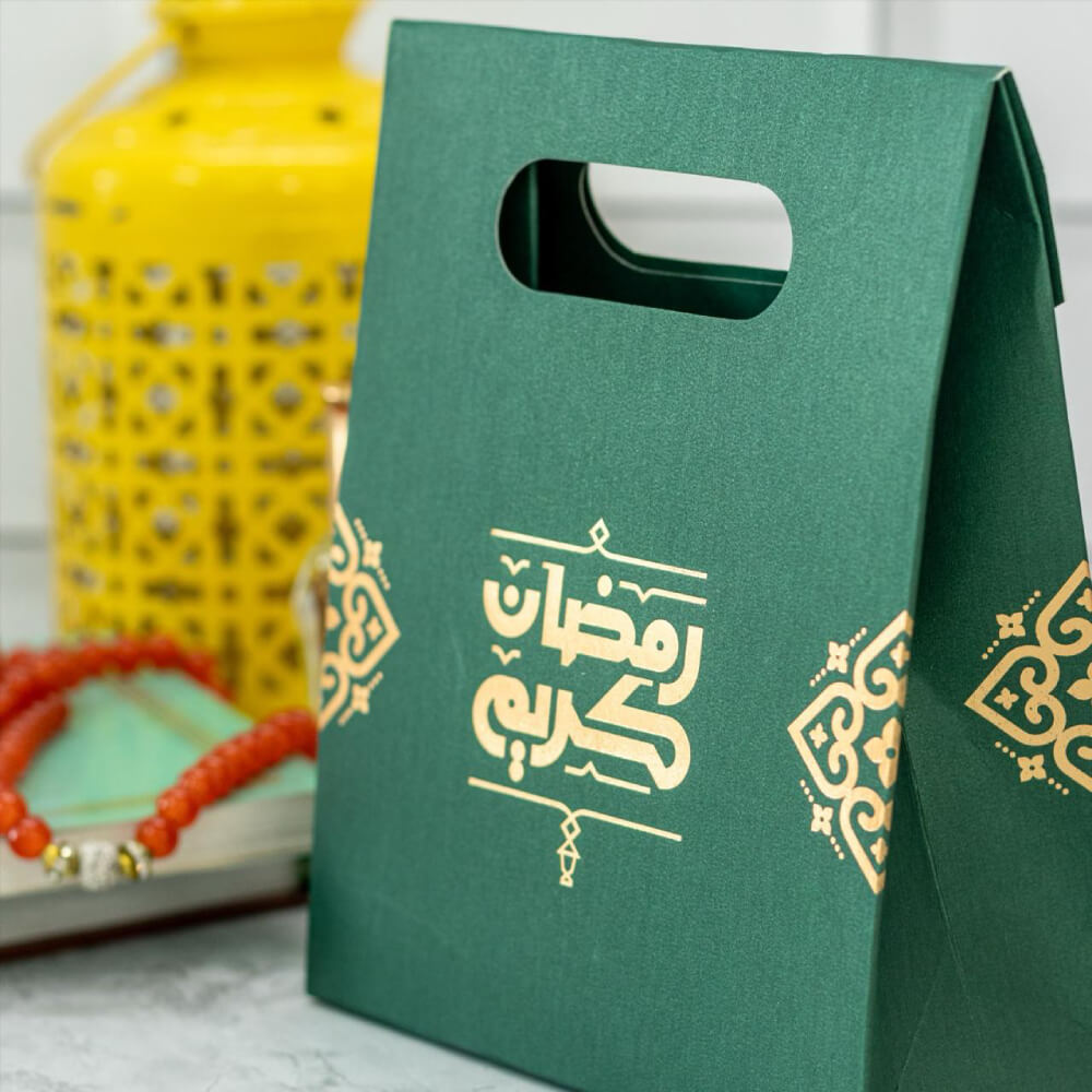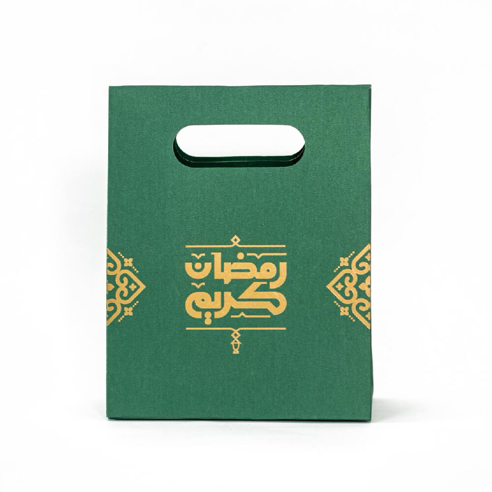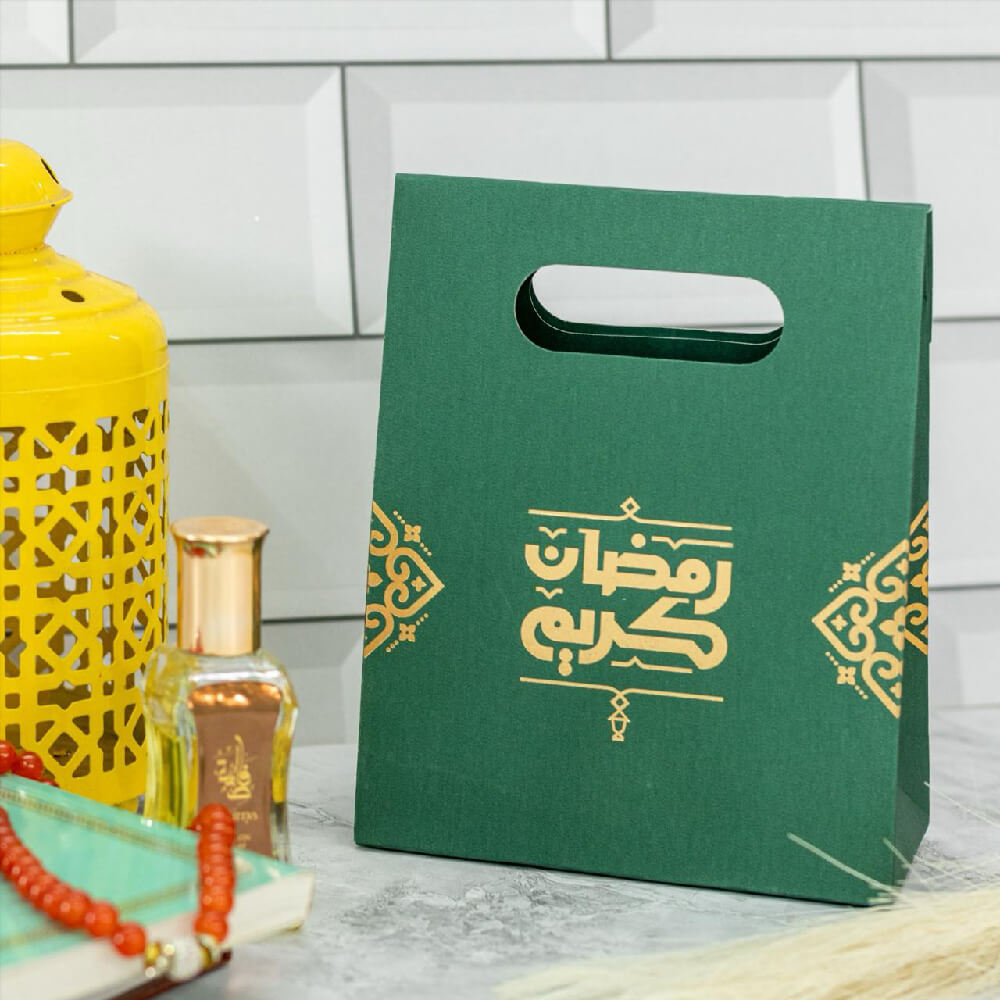 Design: These Arabic Ramadan Kareem Green Favor Bags are designed with Ramadan theme elements and written “Ramadan Kareem” in Arabic with a gold & green color combination that must be popular with kids and guests at Eid parties.