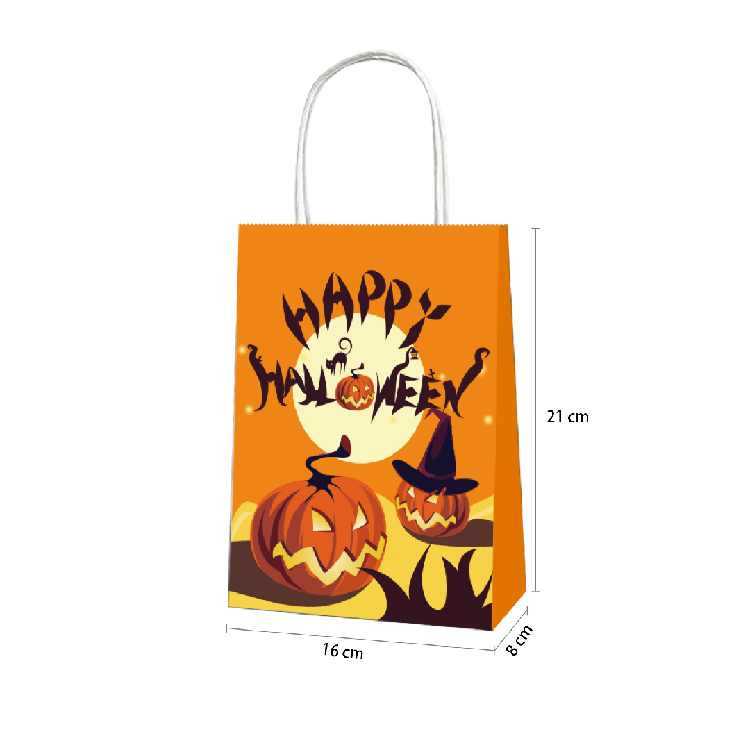 Happy Halloween paper gift bags from The Party Popper are the perfect way to package your Halloween treats and favors. They are made from high-quality paper and feature a festive Happy Halloween design in orange and black. The bags are also equipped with sturdy handles, making them easy to carry.