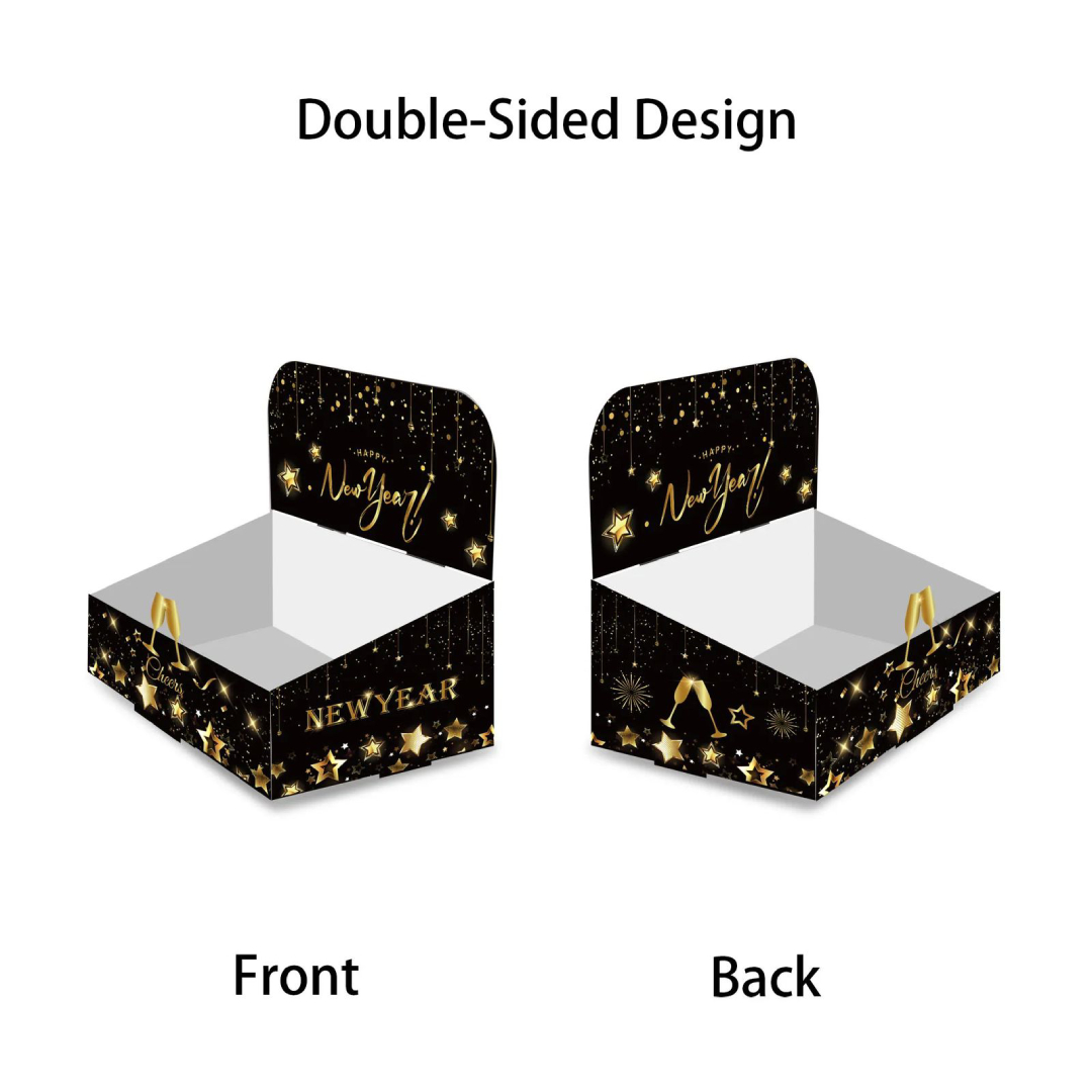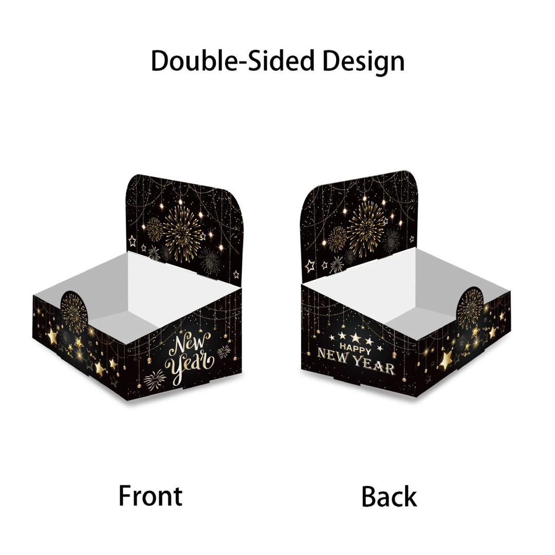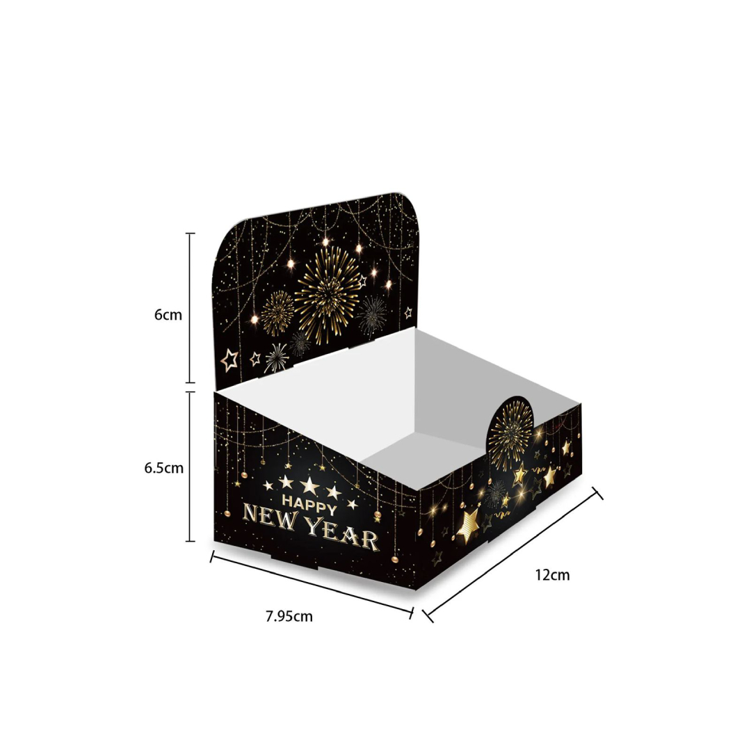 Make your New Year's celebration a feast to remember with our "Happy New Year Food Boxes." These festive containers are perfect for serving and packaging delectable treats, adding a touch of joy to your party spread. Celebrate the arrival of the New Year with style and flavor. Our boxes are the perfect solution for serving up a delightful array of treats at your festive gathering.
