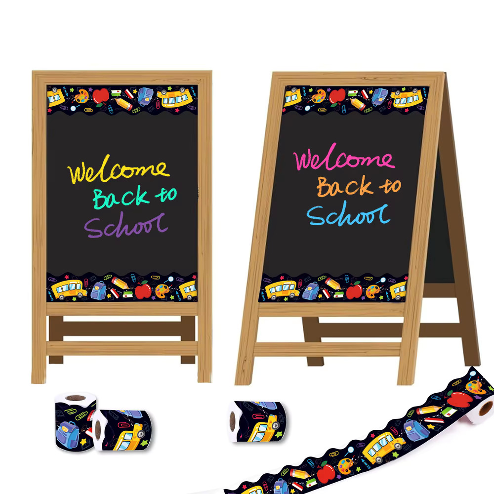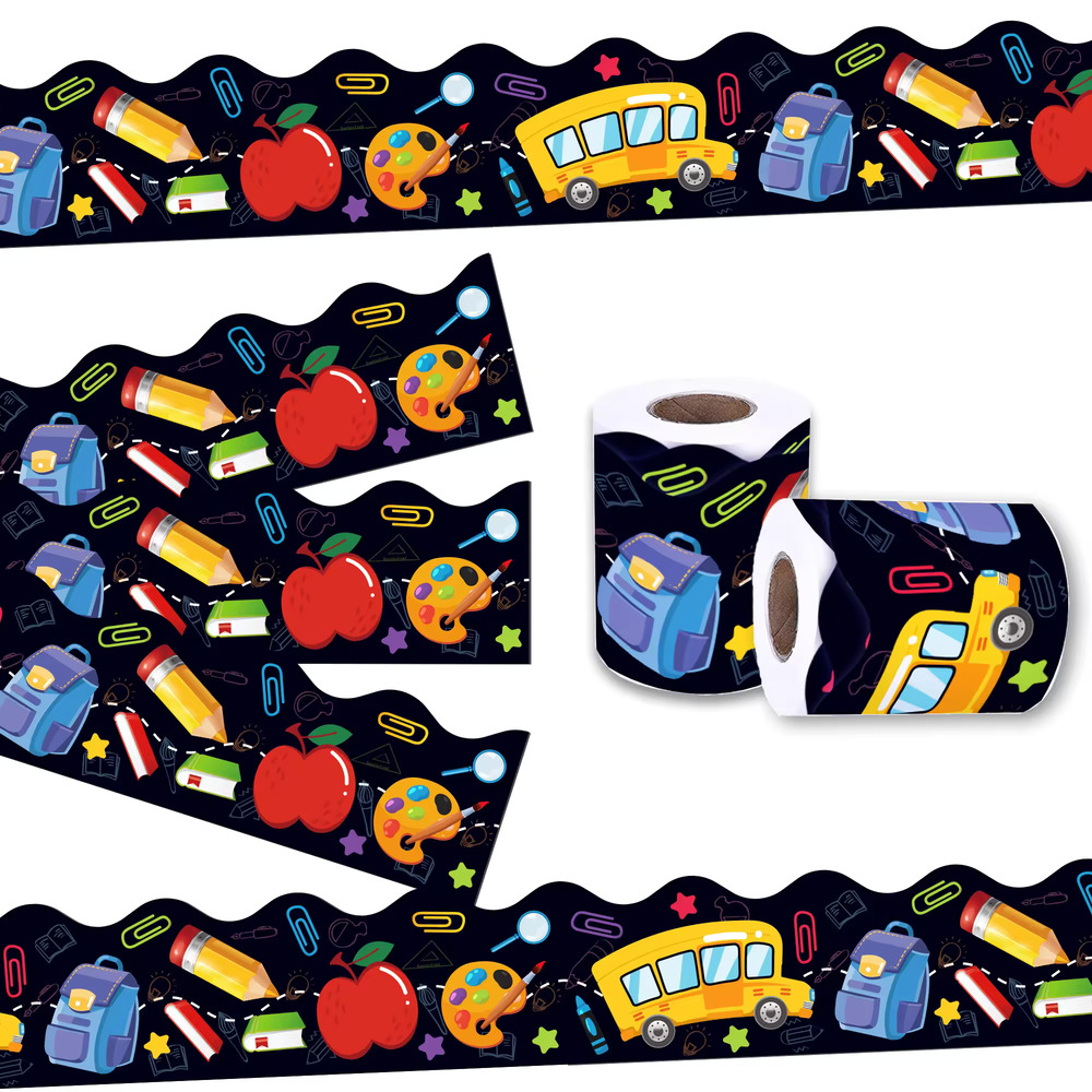 Transform your classroom into a vibrant learning space with this 68FT roll of back-to-school bulletin board border trim. Featuring charming self-adhesive decals of buses, pencils, and books, this trim adds a playful touch to bulletin boards, walls, and displays. Perfect for school party supplies or classroom decorations, it effortlessly enhances any educational environment with its colorful and engaging design.