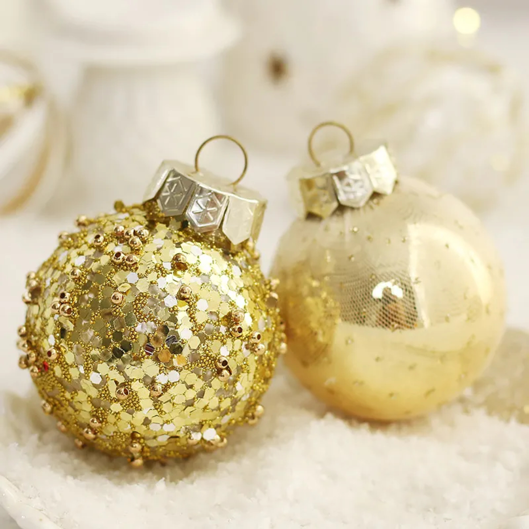 Elevate your Christmas tree decor with our Gold Christmas Ball Ornaments. These classic and timeless ornaments are perfect for adding a touch of sophistication to your holiday tree. They come in various sizes and finishes, creating a stunning visual display.