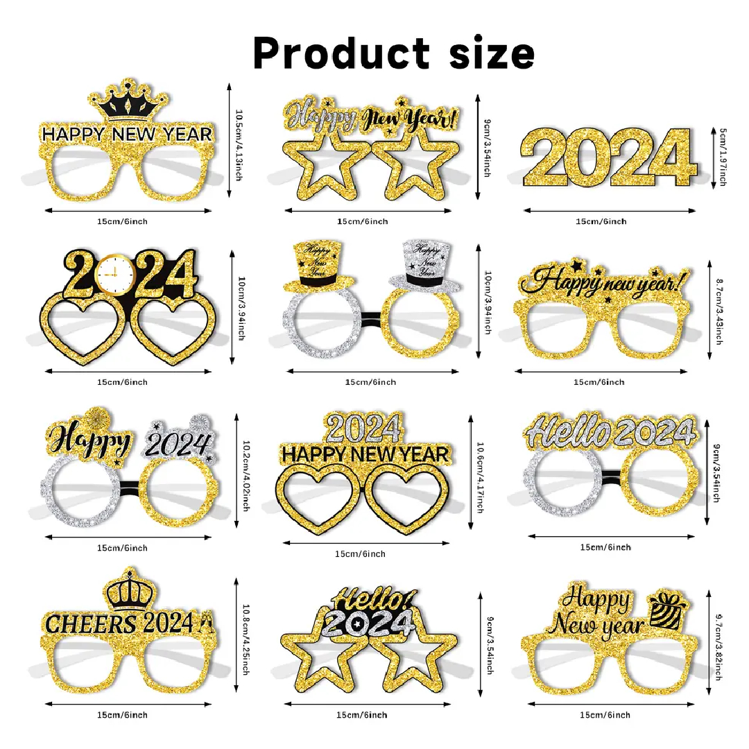 • Material and Size: These new years eve glasses 2024 are made of quality card stock, thick, wear-resistant and not easy to fade; The new years glasses frame size is about 150 x 100 mm, and the length of the leg is about 130 mm, fits most kids, teens and adults. Please refer to the pictures for more details.