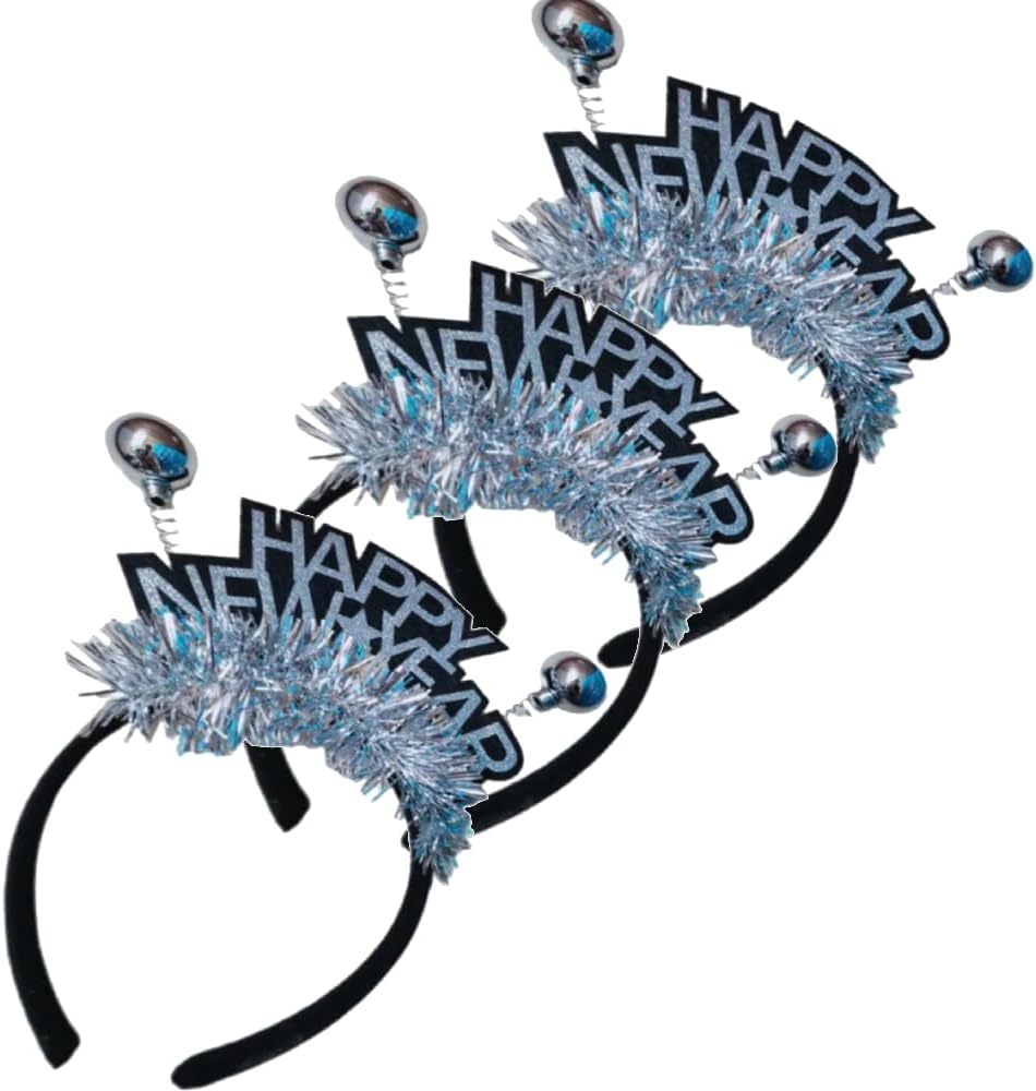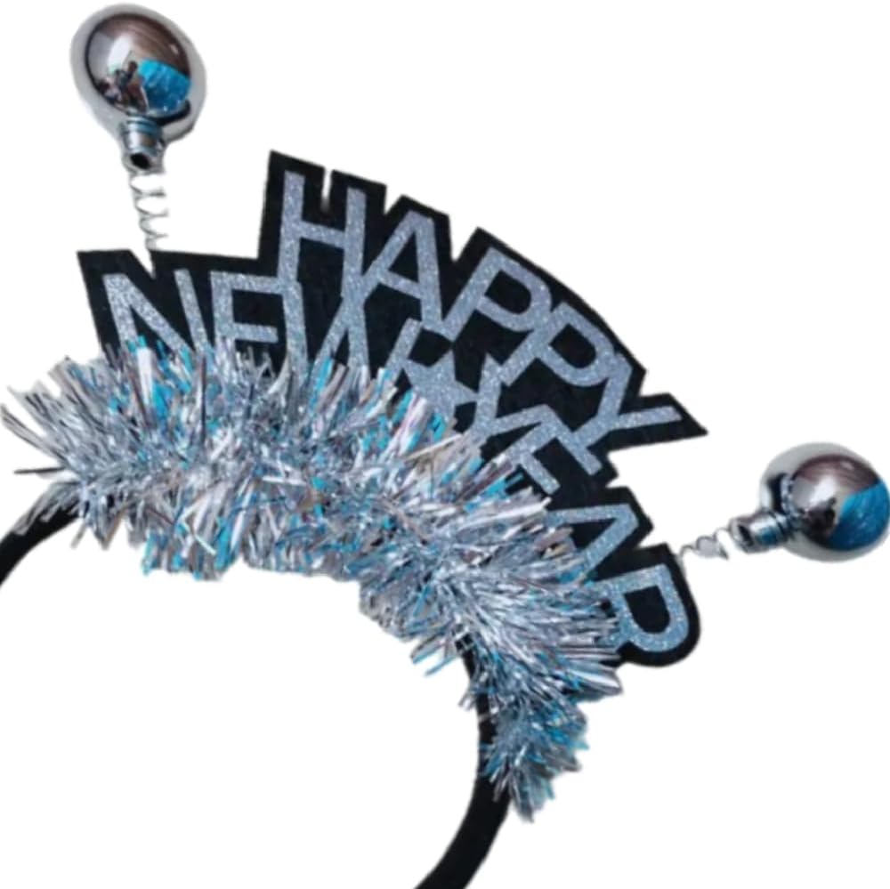 Pack of 3 Silver 2025 Happy New Year Tinsel Headband- 3 Pcs