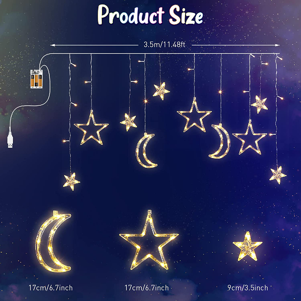 Illuminate your Eid festivities with our exquisite Star and Moon Eid Light Curtains. These mesmerizing curtains feature delicate stars and moons, creating a celestial ambiance that will enchant your guests. Hang them in your home or event space to add a touch of magic and elegance to your Eid celebrations.