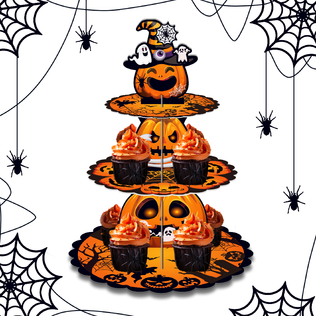 Display your Halloween treats in a spook-tacular way with our 3-Tier Halloween Pumpkin Cupcake Stand! This stand features charming pumpkin designs that are perfect for showcasing your creepy cupcakes. Whether it's a Halloween party or a family gathering, this stand will make your treats the centerpiece of the occasion. Get ready to elevate your Halloween dessert game!