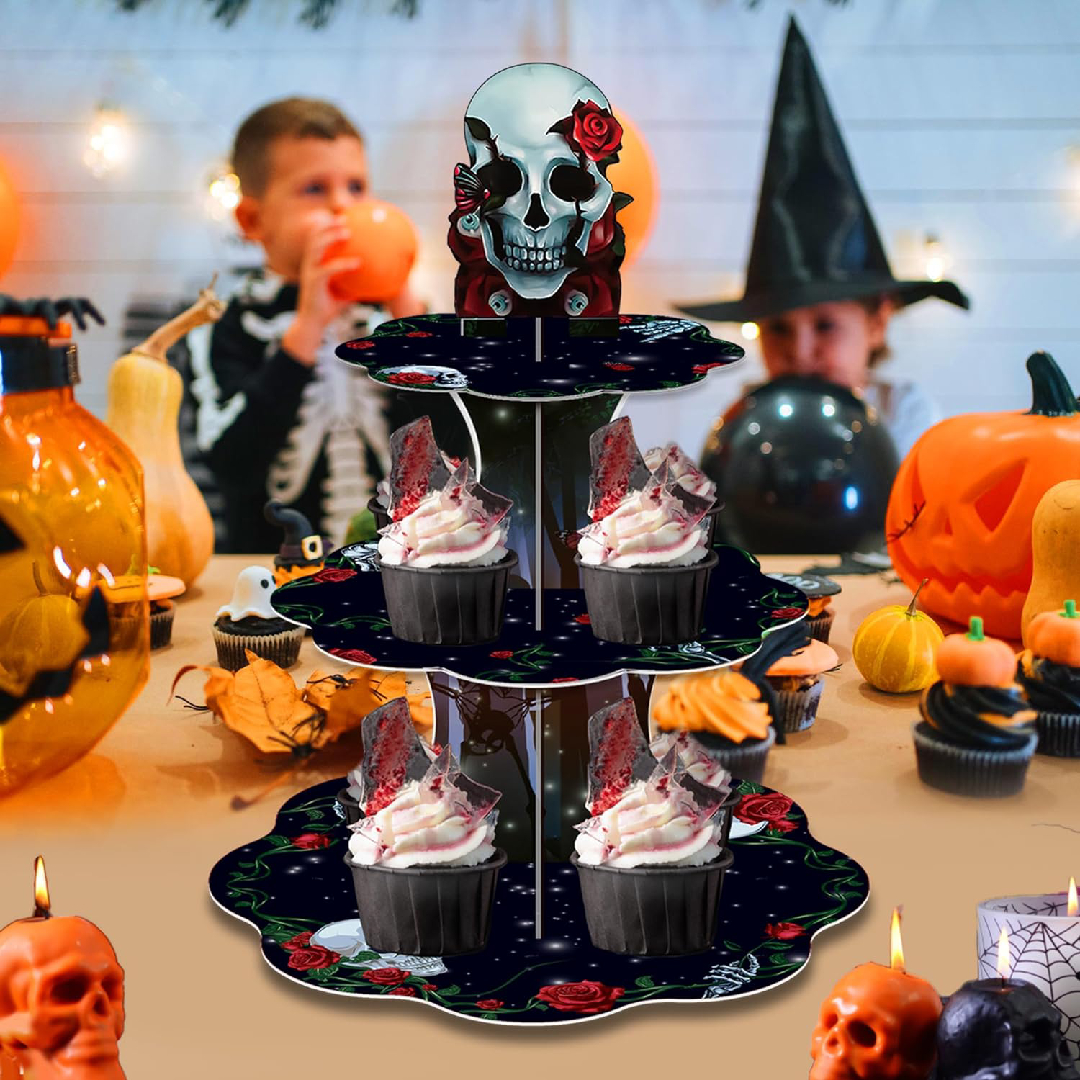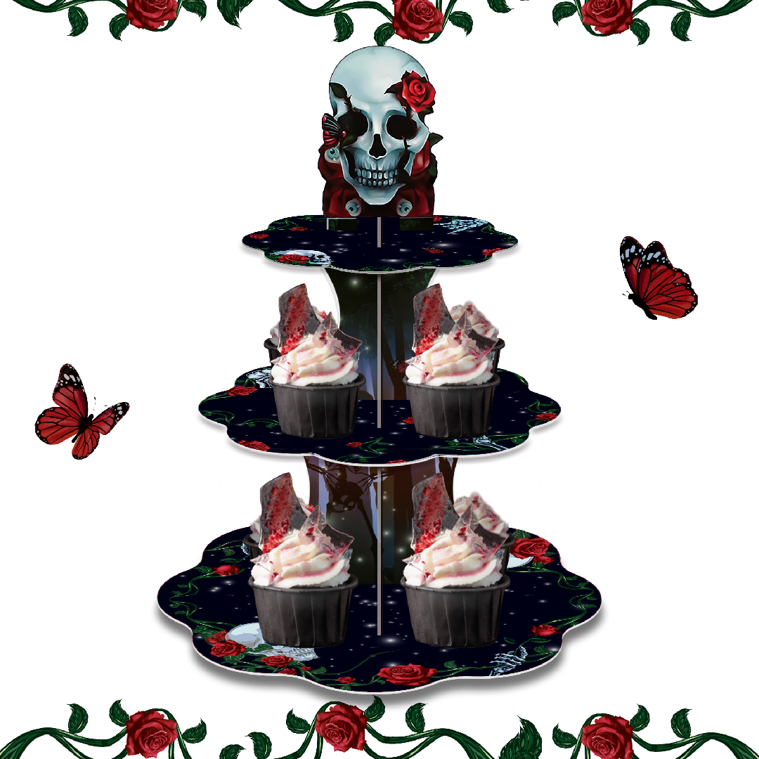 Elevate your Halloween treats to the next level with our 3-Tier Halloween Skull Cupcake Stand! This eye-catching stand features a spooky skull design that's perfect for showcasing your ghoulish cupcakes. Whether you're hosting a costume party or just indulging your sweet tooth, this stand adds a touch of eerie elegance to your treats.