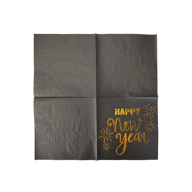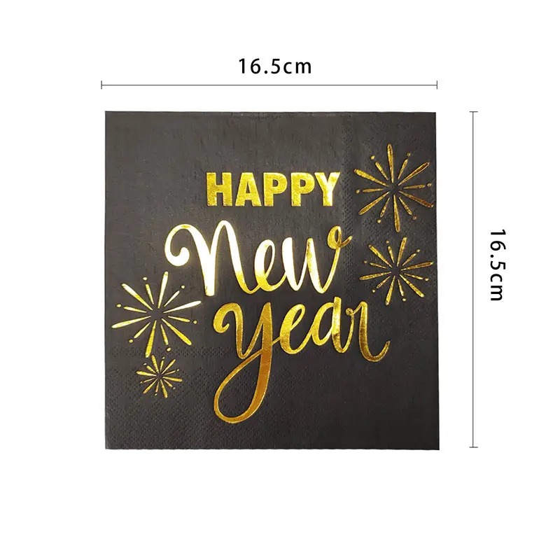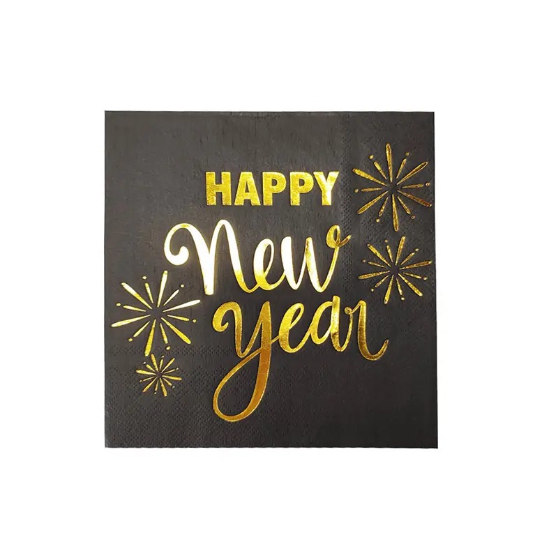 Make your 2025 New Year's Eve celebration even more stylish with these Black & Gold Happy New Year Napkins. Designed to complement your party décor, these disposable napkins feature a chic black background with bold gold "Happy New Year" text, adding a festive and elegant touch to your table setting. Perfect for ringing in the new year, these napkins are ideal for keeping your guests clean while enhancing the overall theme of your celebration. Made from high-quality, durable paper, these napkins are both functional and stylish.