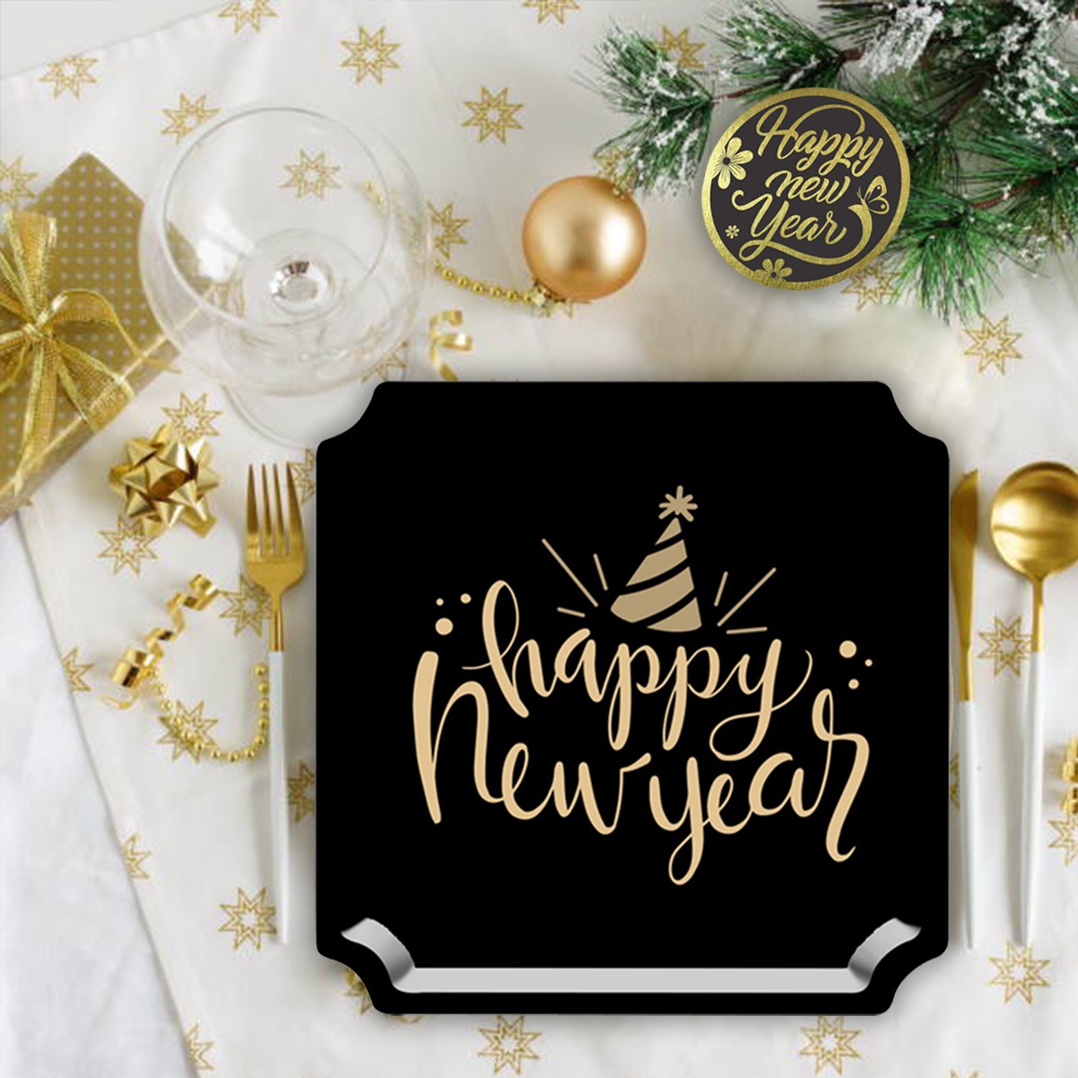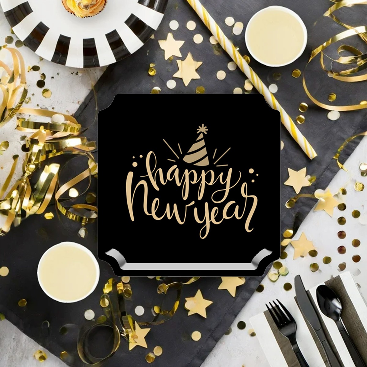 Ring in the New Year with style and sparkle using our Pack of 8 Happy New Year Paper Plates – the perfect addition to your festive party setup! Designed with a luxurious black and gold color theme, these plates feature elegant “Happy New Year” lettering surrounded by stars and confetti accents, instantly creating a glamorous look for your celebration.