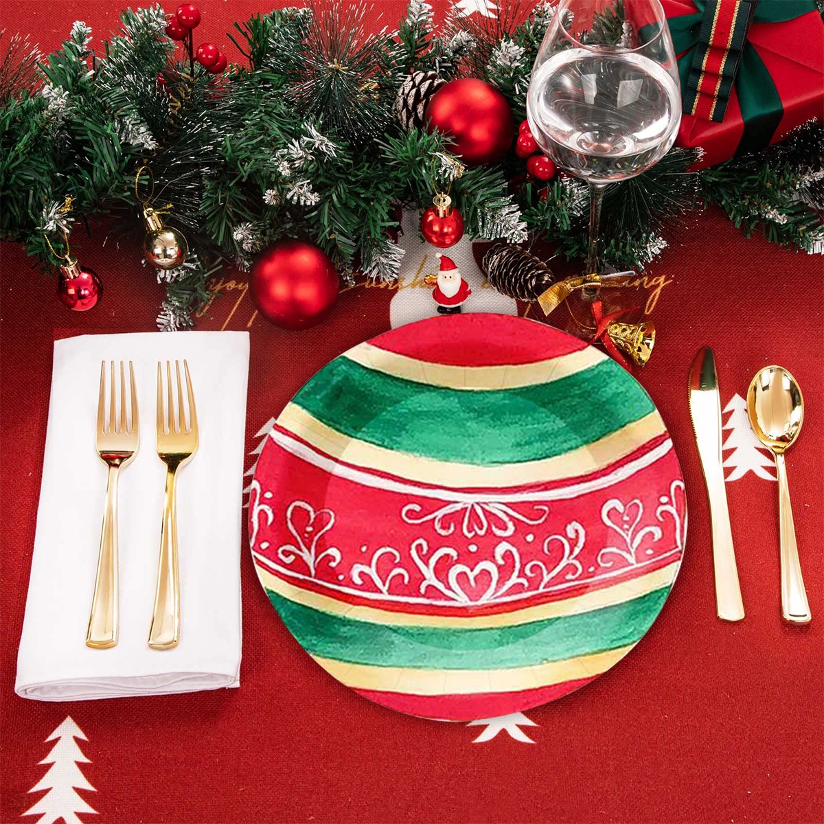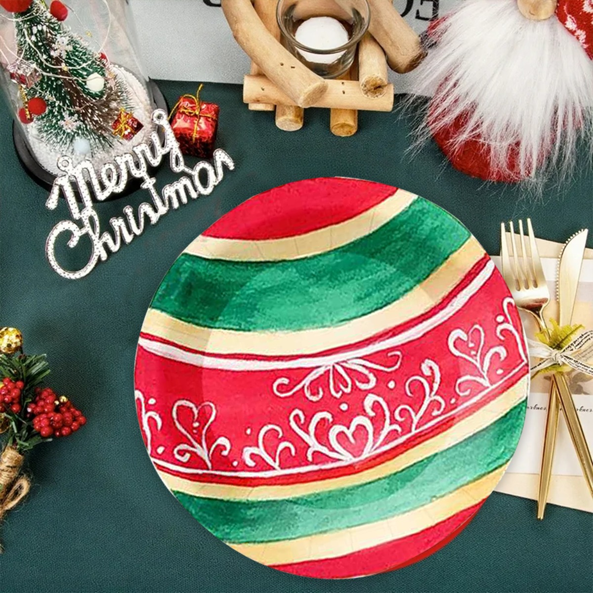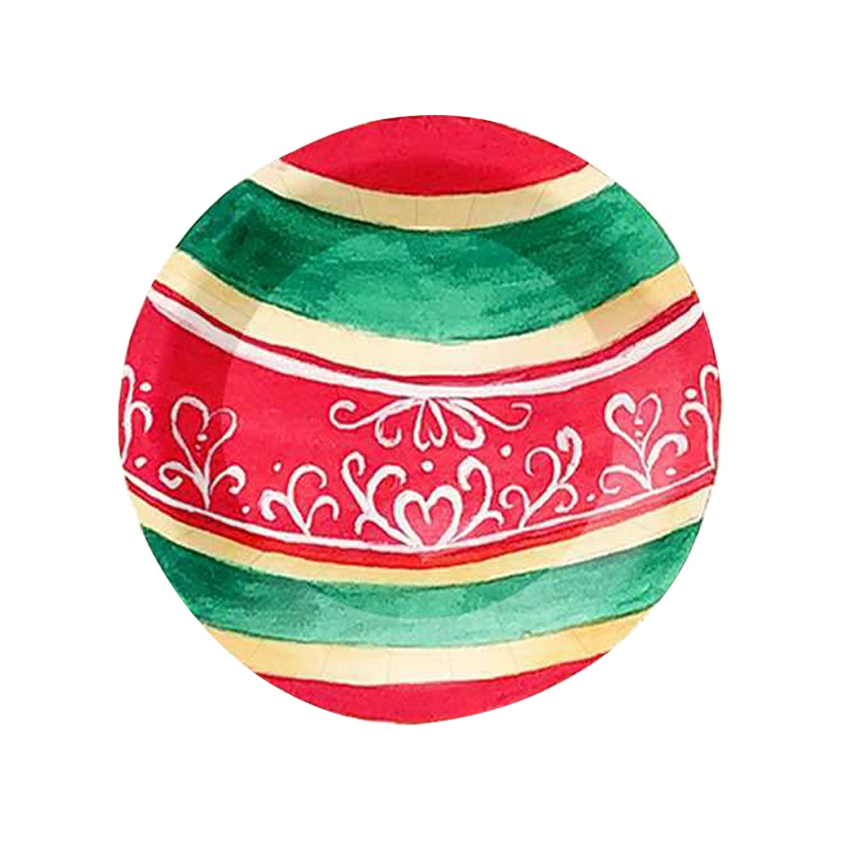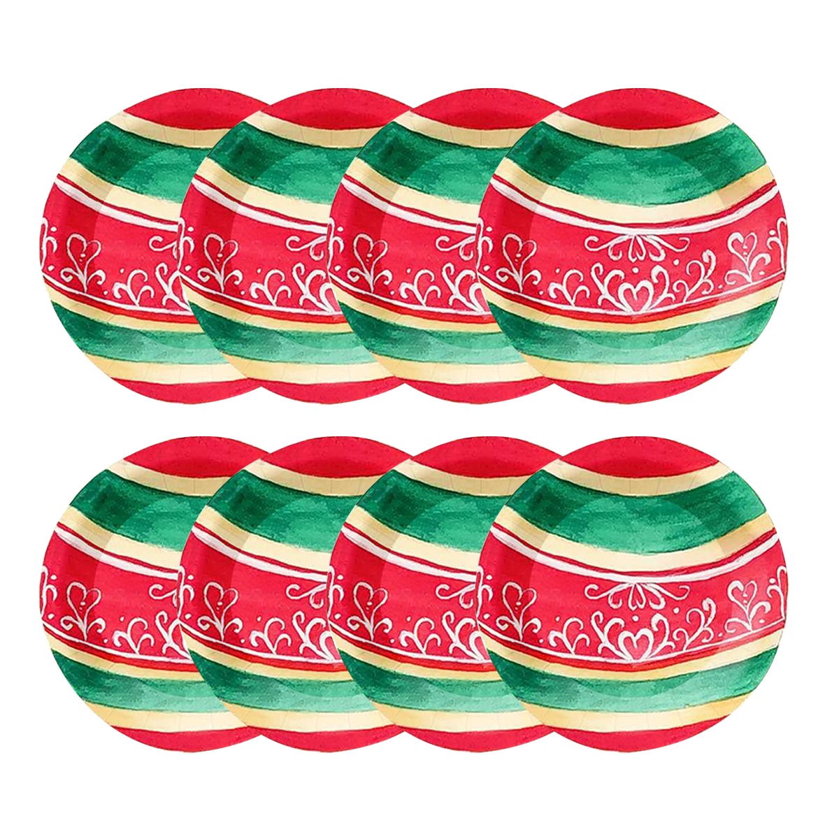 Bring festive joy to your holiday celebrations with this 8 Pcs Bauble Print Christmas Paper Plate Set! Designed with beautiful red, green, and gold colors inspired by classic Christmas ornaments, these plates instantly elevate your party décor and dining experience. Measuring 9 inches, they are the perfect size for serving snacks, desserts, or full meals during Christmas dinners, family gatherings, office parties, and school celebrations.