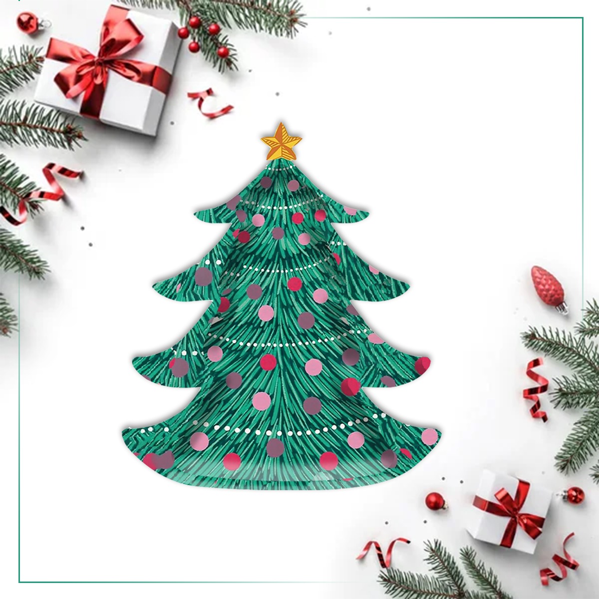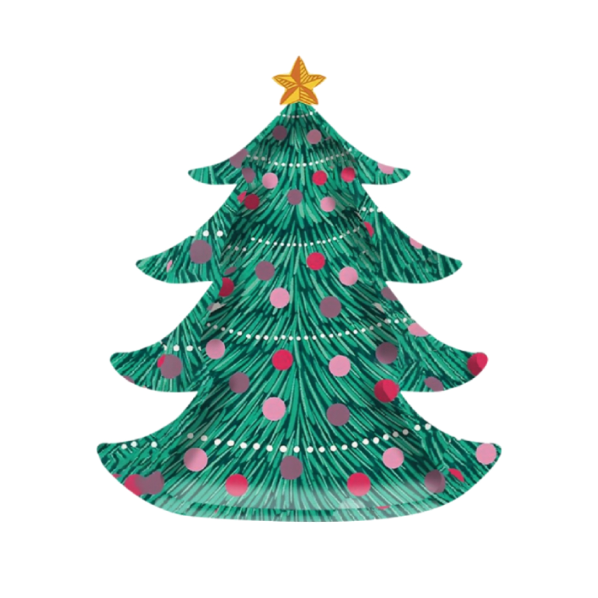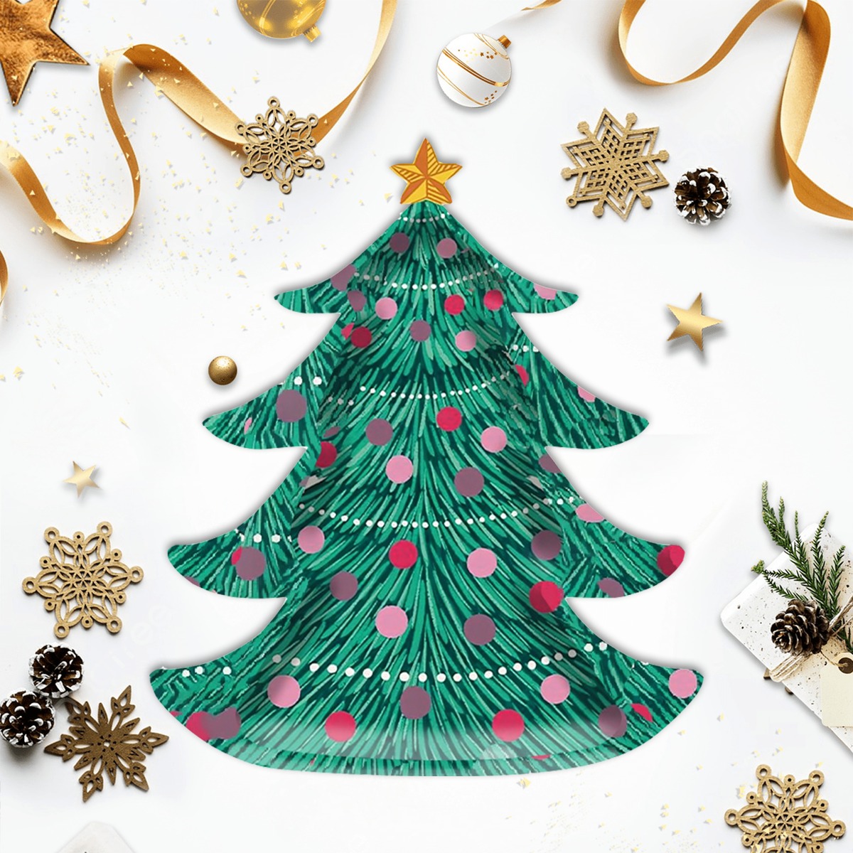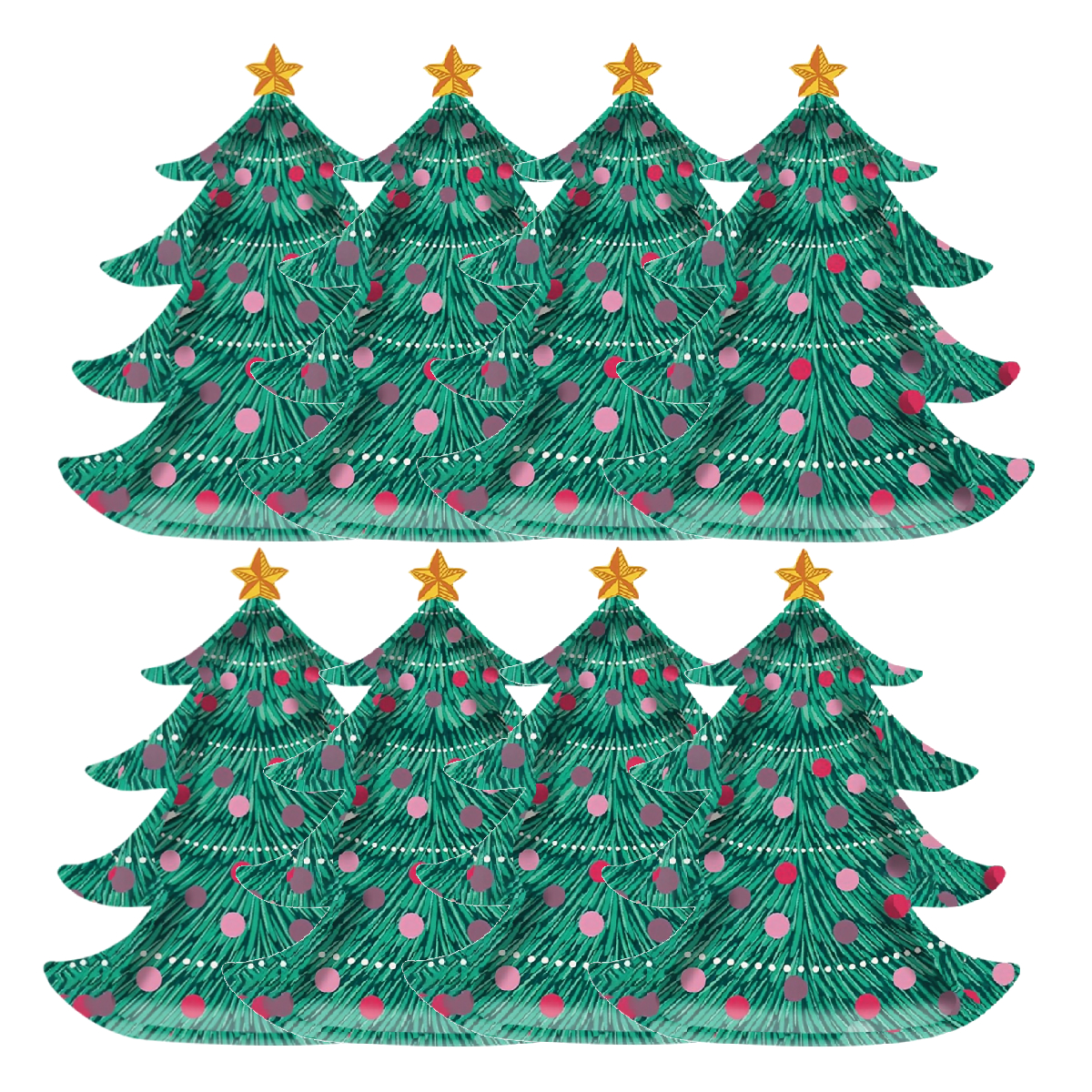 Bring the festive spirit to your holiday celebrations with this 8 Pcs Christmas Tree Shaped Plate Set! Designed in a charming green Christmas tree shape with colorful ornaments, these plates instantly add cheer to any party table. Made from high-quality thick paper, they are sturdy enough to hold snacks, desserts, or even main dishes without bending or leaking.