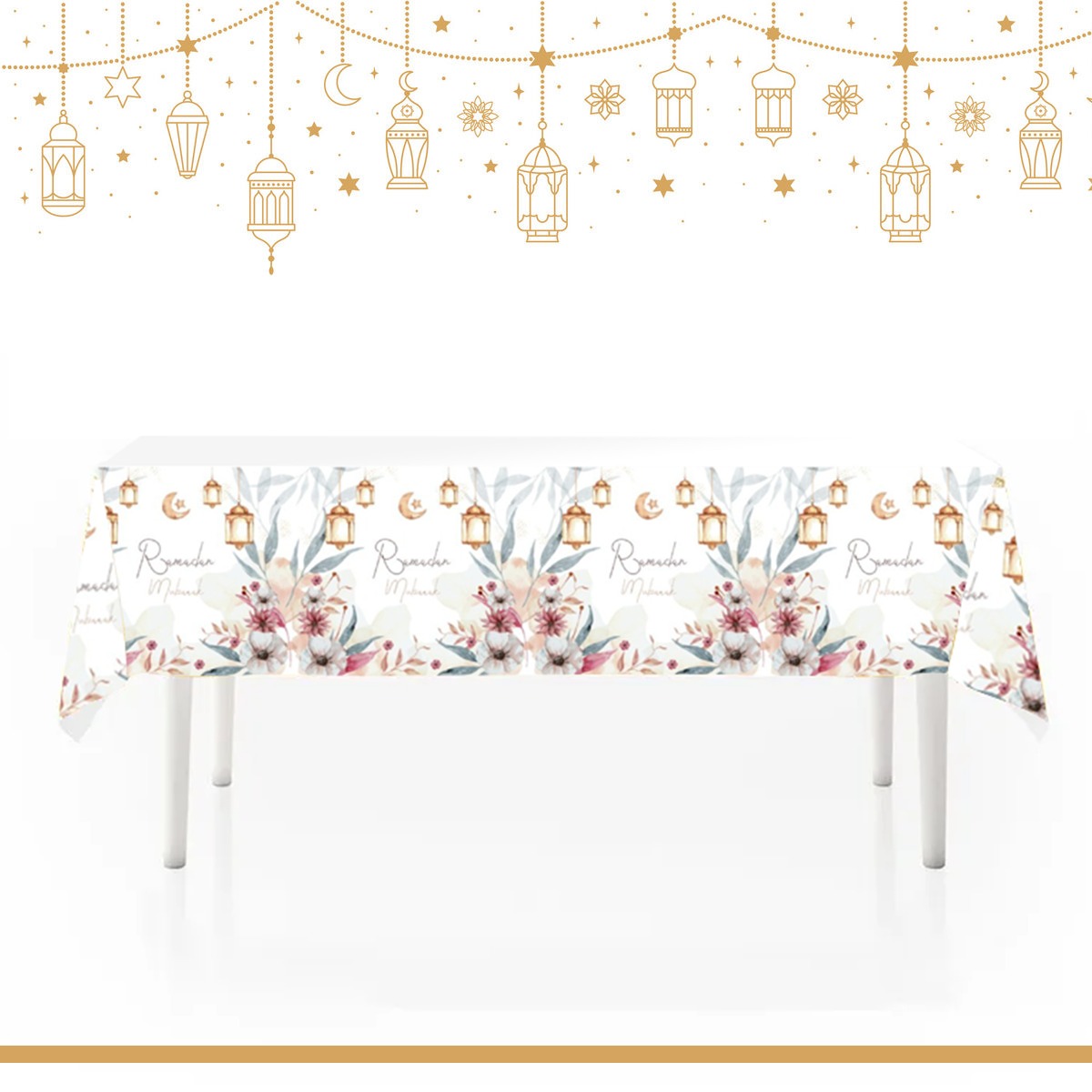 Celebrate the holy month of Ramadan with this elegant Ramadan Mubarak Table Cover, designed to add a festive and welcoming touch to your dining and party setup. Featuring a beautiful Islamic lantern, crescent moon, and floral design, this table cover instantly enhances the atmosphere of your Iftar, Suhoor, and Eid celebrations.