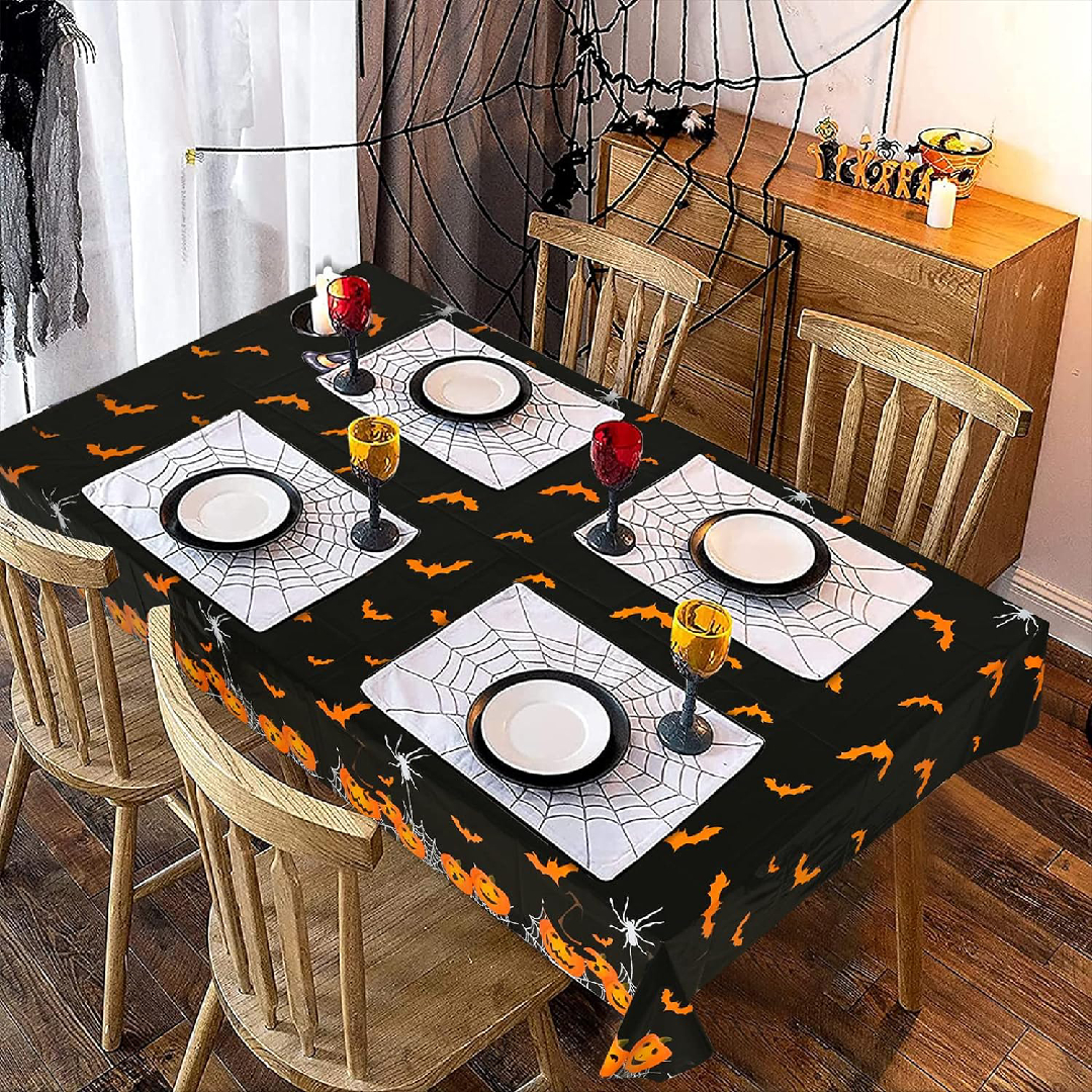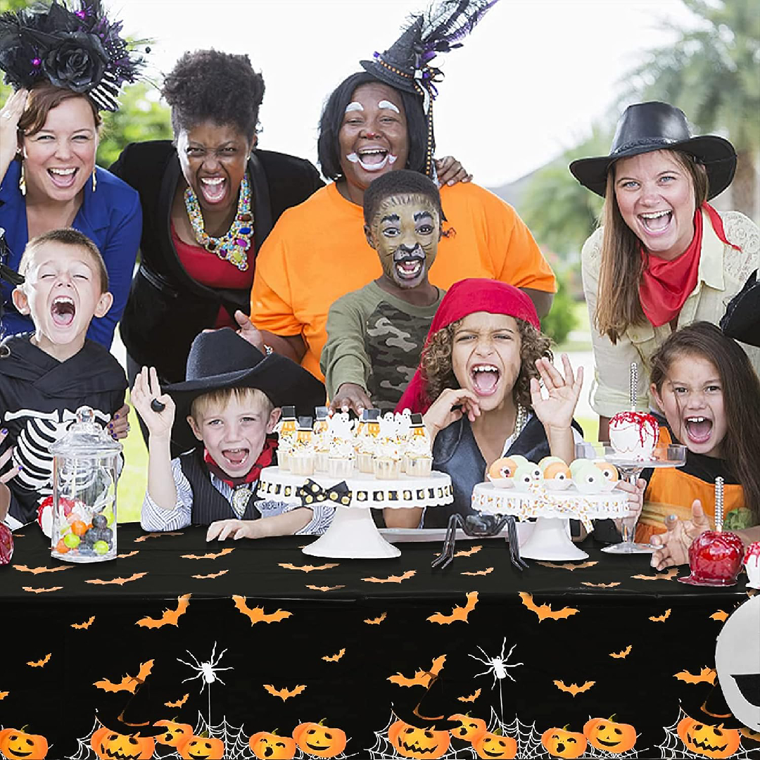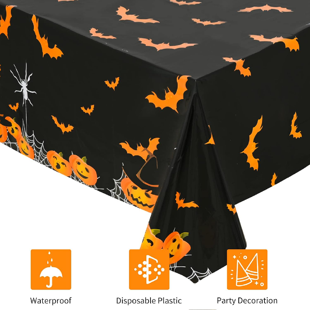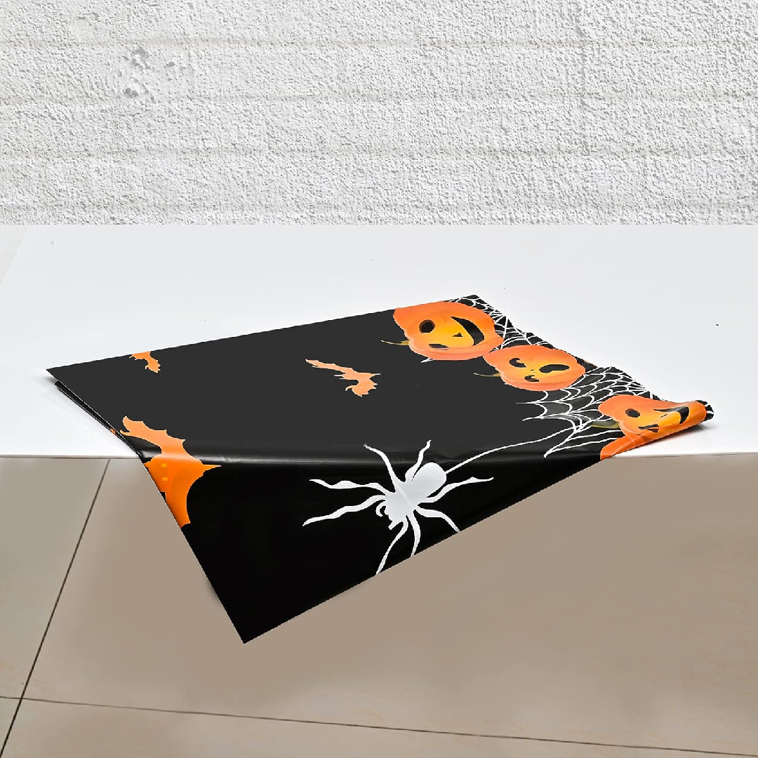 The Scary Pumpkins and Bats Halloween tablecloth from The Party Popper is a great way to add a touch of spookiness to your Halloween party décor. The tablecloth features a festive design with orange and black pumpkins, bats, and ghosts. The tablecloth is also made from high-quality vinyl and is easy to clean up. This tablecloth is perfect for covering your dining table, buffet table, or any other surface at your Halloween party. It can also be used to create a photo booth backdrop or to decorate a table for a Halloween-themed event. The tablecloth is easy to set up and take down, and it can be reused for multiple Halloween parties.